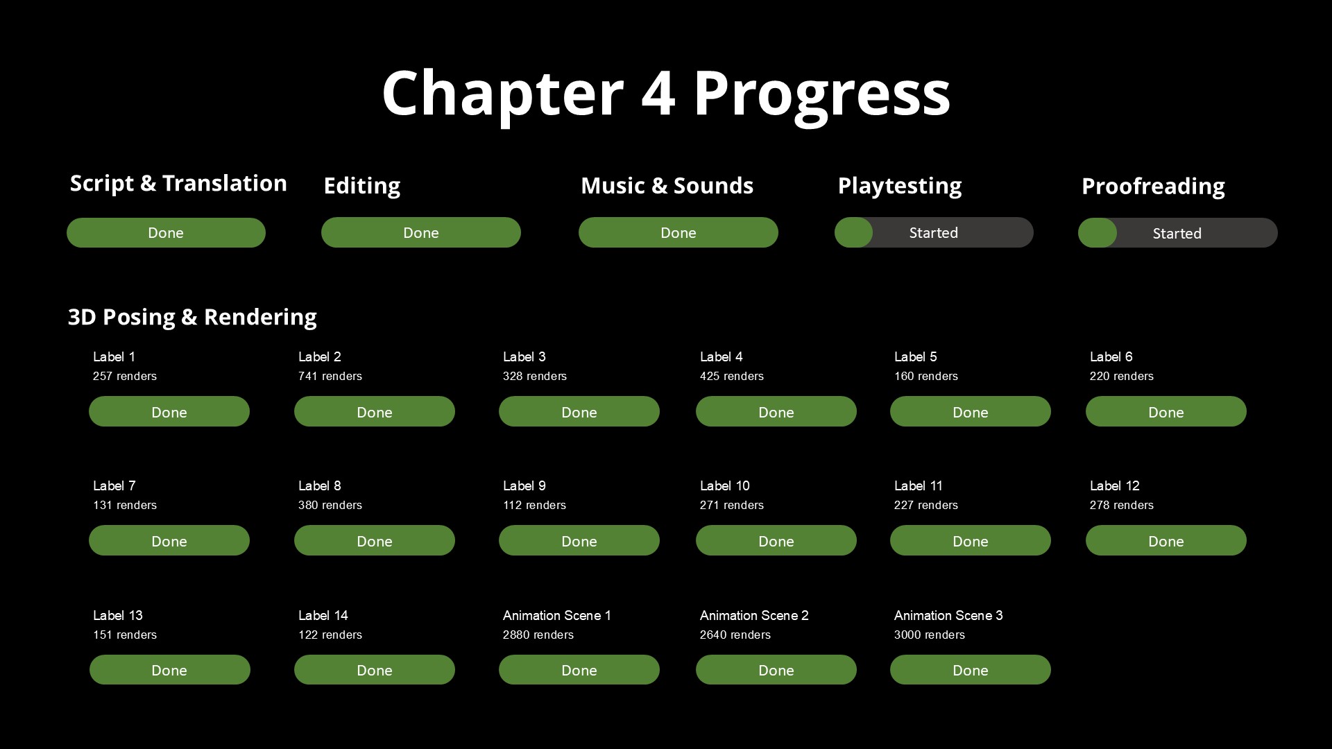 The final renders are running, and once they're finished and compressed, Chapter 4 will go to the duck for proofreading and to the Burger Man for playtesting.